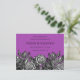 Parlez-nous de votre prochain mariage avec ces cartes postales faciles à customiser. Ces cartes de dattes présentent une illustration de style gravure antique de roses en noir et blanc contre un arrière - plan électrique violet clair et dynamique. Il y a beaucoup de place pour vos informations à l'avant de ces cartes postales avec de l'espace pour des informations supplémentaires à l'envers.