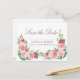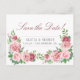 Élégante carte de faire-part de mariage à l'avance de style romantique vintage représentant de beaux bouquets de roses roses fardées et de roses rouges de Bourgogne peints à la main avec un feuillage vert vif et un texte personnalisé sur un fond blanc clair. ++++++++++ Personnalisez-le des deux côtés ! +++++++++++++Convient pour un mariage rustique vintage de printemps, d'été ou d'automne dans un jardin de roses / en plein air.