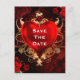 Carte Postale Faire-part Rouge & Or Gothique Cœur Mariage À la date d'écono