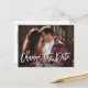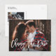 Changez la date ! Annoncez à votre famille et à vos amis le report de votre mariage avec cette carte postale de changement de date. Elle comporte une superposition de lettres manuscrites blanches. Personnalisez en ajoutant vos noms de photos, adresse et autres détails. Cette carte de changement de date sera également parfaite comme annonce de mariage en fuite.