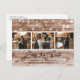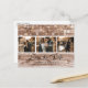 Photo de mariage campagnard rustique personnalisée enregistrer les cartes postales datées avec un collage photo de 3 images contre un arrière - plan patiné en bois de grange rustique orné de lampes à cordes. Personnalisez facilement cette photo rustique enregistrez la carte postale de la date avec vos images et les détails du mariage, y compris un site Web mariage, si vous le souhaitez. Pour des demandes personnalisées, envoyez-nous un message.