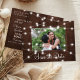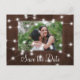 Rustic country photo wedding save the date postcard with glowing strings of white twinkle lights on brown barn wood. +++++++++ Easy to personalize with your picture, names, and text! ++++++++++ Suitable for evening lights, farmhouse, woodland destination, or barn wedding celebrations.
