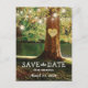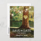 Spring tree enregistrez les cartes postales datées avec un cadre romantique boisé & bord de lac avec un fraisier rouge, coeur d'amour sculpté avec vos initiales, des lumières scintillantes à cordes et un moderne enregistrer le modèle date.