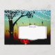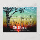 Chaîne de lumières Chêne rustique Enregistrer la Date Cartes postales avec un beau coucher de soleil et arrière - plan de terrain. Ajoutez votre adresse de retour au verso et une zone vierge pour que vous puissiez envoyer les cartes postales à vos invités. Ce sont de bonnes choses pour les mariages campagnards. La silhouette du chêne a des feuilles cardiaques et un coeur sculpté dans le tronc d'arbre. Éléments correspondants :