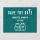 Mariage rustique minimaliste enregistrez la carte postale date avec calligraphie moderne idéal pour une fête de campagne/jardin/grange rustique turquoise.