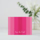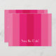 Des rayures roses ornent cette carte postale "Save the Date" chic. Les deux côtés ont des lettrages blancs. Très classe ! Vous pouvez facilement changer le nom, l'âge, la date, le lieu, etc. Tous droits réservés © 2017 Alan & Marcia Socolik.