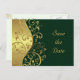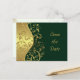 Carte Postale Faire-part Sauvegarder la date--Tourbillons dorés et vert fon