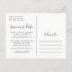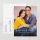 Romantique et personnel, cette carte postale "save the date" présente une photo de couple en portrait intégral avec une typographie de script blanc superposée sur la partie inférieure. Les noms des mariés et la date du mariage sont affichés en blanc propre sans-serif ci-dessous. Le verso détaillé de la carte postale comprend les champs date, lieu, site web et adresse. Tout le texte et la photo sont entièrement modifiables.