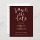 Carte Postale Faire-part Sauver la date faux Rose or script bordeaux