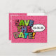 Avec des cœurs de confettis, une carte fun et tendance de sauvegarde de date de mariage inspirée des bandes dessinées qui met le boum, zap, pow dans votre annonce de date de mariage. Le verso présente vos informations d'événement supplémentaires. Conçu par Thisisnotme©