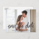 Notre mariage enregistrer la date carte postale dispose d'un script de brosse d'écriture moderne sur votre photo fiançailles.