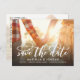 Cette carte postale élégante enregistrer la date annonce présente votre photo en l'associant avec un script de calligraphie moderne fantaisiste et romantique qui dit "Enregistrer la date". L'arrière comporte une photo supplémentaire avec une transparence blanche dessus. Ajoutez simplement vos photos et les détails de votre grand jour en utilisant le modèle fourni.