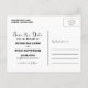Whimsical et élégant enregistrer la carte postale date avec script de calligraphie moderne blanc. Des articles similaires et d'autres couleurs sont disponibles.
