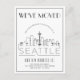 Une carte postale d'annonce de déménagement de style Art déco moderne unique pour la belle ville de Seattle, Washington. Cette carte présente une illustration stylisée de l'horizon unique de la ville avec son nom en dessous. Cela est suivi de vos informations d'adresse dans un style à lignes ouvertes assorti. Tous les éléments individuels de la carte sont déverrouillés, n'hésitez donc pas à modifier ou à ajouter les détails nécessaires en utilisant la fonction de personnalisation.