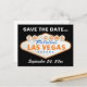 Las Vegas signe orange et noir de destination mariage Save the Date carte postale, avec le célèbre signe néon et le texte "Welcome to Fabulous Las Vegas, Nevada" en orange et bleu sur noir avec quelques éléments avec la permission de anasofiapaixao.