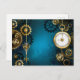 Carte Postale Faire-part Steampunk Arrière - plan turquoise avec Gears