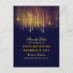 Les lumières à cordes marine et or enregistrer les cartes postales de date avec des particules de confettis de parties scintillant dorée.