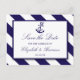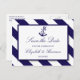 Carte Postale Faire-part Stripes Nautiques & Ancre Bleue Marine Enregistrer