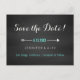 Ces mariages élégants sauvent la date les cartes postales ont un aspect noir tableau noir arrière - plan, et les styles de texte moderne en blanc et turquoise. Une flèche blanche entoure votre date de mariage. Vous pouvez également personnaliser le dos de la carte postale avec votre message personnel, ou tout simplement supprimer ce texte complètement si vous préférez que le dos soit vide.