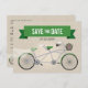 Carte Postale Faire-part Tandem Green Bicycle Wedding Enregistrer la date