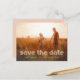 Ces mariages élégants et tendance sauvegardent les cartes postales datées présentent une typographie de style disco rétro comme une superposition sur une de vos photos personnelles. Le dos a un arrière - plan de couleur beige neutre avec un texte brun terreux assorti, ainsi qu'un code QR scannable pour ajouter votre site mariage. Un look vintage et totalement moderne.