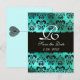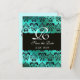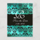 CARTE POSTALE FAIRE-PART TISSU DAMASSÉ TURQUOISE BLEU VERT,MONOGRAMME BLANC