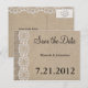 Carte Postale Faire-part Toile de jute et dentelle Économisez la date Rusti
