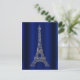 Carte Postale Faire-part Tour Eiffel argent bleu royal Paris enregistrer la