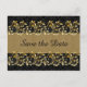 Tourbillons dorés, mariage damassé noir Enregistrer la date Carte postale