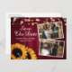 Ces mariages rustiques, à l'exception des cartes postales datées avec des tournesols sur un arrière - plan en bois de grange, sont idéales pour une fête de mariage rustique bordeaux inspirée des tournesols.