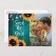 Carte Postale Faire-part Tournesol En Bois turquoise Enregistrer La Date Ph