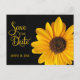 Carte postale Bright, beau tournesol "Save the Date". Ajoutez votre date de mariage sur le devant et les noms et l'adresse de retour sur le dos.