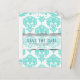 Carte Postale Faire-part Turquoise & blanc Damas Chic Wedding Enregistrer l