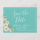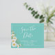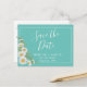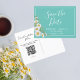 Carte Postale Faire-part Turquoise & blanc Enregistrer la date Code QR