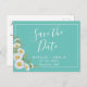 Jolie Enregistrer la date annonce carte postale caractéristiques aquarelle blanc marguerite coin sur arrière - plan turquoise clair avec des blocs de texte personnalisables en blanc dans les polices modernes. Ajoutez du code QR personnalisé et d'autres informations sur le dos.