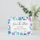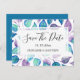 Carte Postale Faire-part Turquoise Violet Feuilles Mariage Épargnez La Date