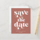 Moderne Retro Stylish Typographie Mariage Sauvegarder la Date Carte postale dans moderne tonalité boho neutre de terre cuite rouille brun. Parfait pour faire connaître à vos futurs invités votre heureux événement ou fiançailles ! Veuillez nous contacter à cedarandstring@gmail.com si vous avez besoin d'aide pour la conception ou les produits correspondants.