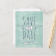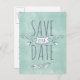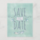 Boho Chic Enregistrer les cartes de dates. Le design chic boho unique mais simple sauve les cartes postales datées aux accents d'inspiration bohème, y compris les plumes colorées (les deux côtés). Arrière - plan aqua en détresse. Personnalisez avec le nom de la mariée et du marié, la date du mariage et l'emplacement du mariage.