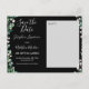 Ceux-ci sauvegardent les cartes de date comprennent des feuilles d'aquarelle verte et de minuscules fleurs sur un arrière - plan noir. Ils font partie d'une collection qui comprend une gamme complète d'invitations de mariage et de papeterie assorties. Visitez les pages de collection de notre magasin pour voir la gamme complète d'articles que vous pouvez personnaliser pour votre mariage.