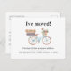 J'ai déménagé Moderne Changement d'adresse Déplacement de carte postale. Sur le déplacement sur mon vélo en mouvement changement d'adresse carte de faire-part avec une aquarelle féminine vélo avec un panier à fleurs et des bagages sur le rack. Parfait pour faire connaître à vos amis et à votre famille votre nouvelle adresse et où se passera la soirée de réchauffement climatique probable. Ajoutez vos nouveaux détails en cliquant sur le bouton "Personnaliser"