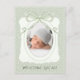 Whimsical green ribbon with green and white polkadot background to form a vintage design for this lovely baby birth announcement. Vintage rustic frame with whimsical ribbons flowing down over baby photo. Sage green. 100% customer satisfaction at Zazzle every day.