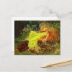 Carte postale représentant le tableau d’Arthur Wardle A Fairy Tale (1895). Une jeune femme aux longs cheveux rouges porte une robe jaune et dort dans une forêt verte à côté du chevreuil, du lapin et du paon. Un beau cadeau pour les amateurs de contes de fées et les amateurs d'art anglais !