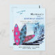 Carton d'invitation pour une fête d'anniversaire de surf sur la plage avec planche de surf