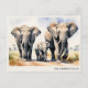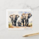Carte Postale Famille d'éléphants à l'aquarelle avec nom personn