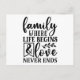 Une famille où la vie commence & l'amour ne finit jamais carte postale