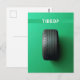 Une carte postale verte avec une illustration de pneu de voiture et le texte amusant personnalisable "fatigué?". Il s'agit d'une carte postale amusante avec un humour de lecture de texte que vous pouvez envoyer à vos amis avant les vacances pour les invitations pour des vacances.