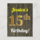 Carte Postale Faux Bois, Faux Or 15e Anniversaire & Nom Personna