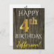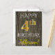Cette carte de voeux d'anniversaire simple et personnalisée présente le message "Joyeux 4ème anniversaire", avec le "4ème" ayant une apparence dorée factice. Le devant présente également un nom personnalisé et un fond à l'aspect bois factice. Le verso présente un message d'anniversaire personnalisable, ainsi que l'adresse personnalisable du destinataire de la carte d'anniversaire. Elle pourrait être offerte à quelqu'un qui célèbre son quatrième anniversaire.