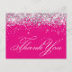 Carte Postale Faux pailleté argenté scintillant Merci rose chaud