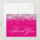 Carte Postale Faux pailleté argenté scintillant Merci rose vif